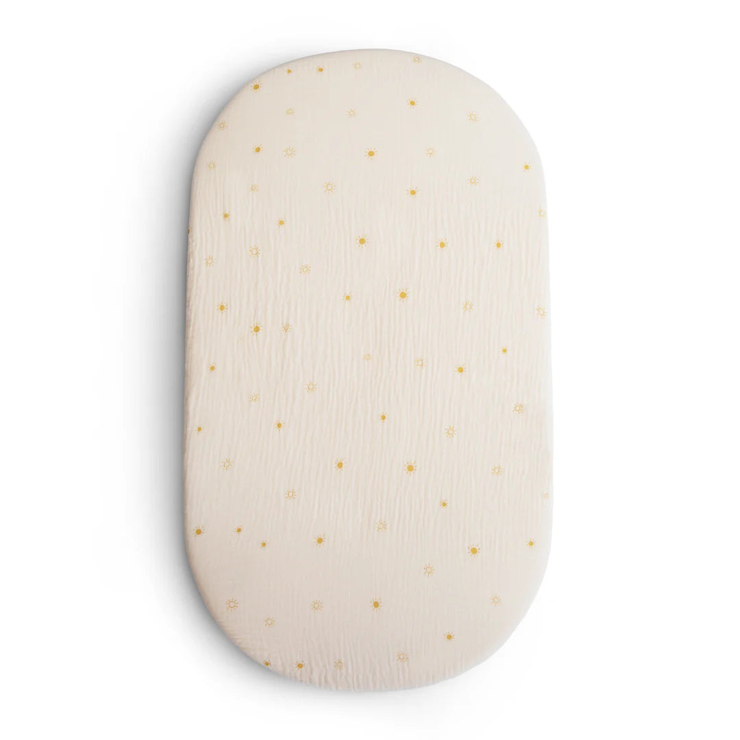 Made from 100% muslin cotton, our cozy, extra soft bassinet crib sheet is pre-washed for softness against baby's delicate skin. Muslin fabric stays breathable while keeping your baby warm and cuddly.