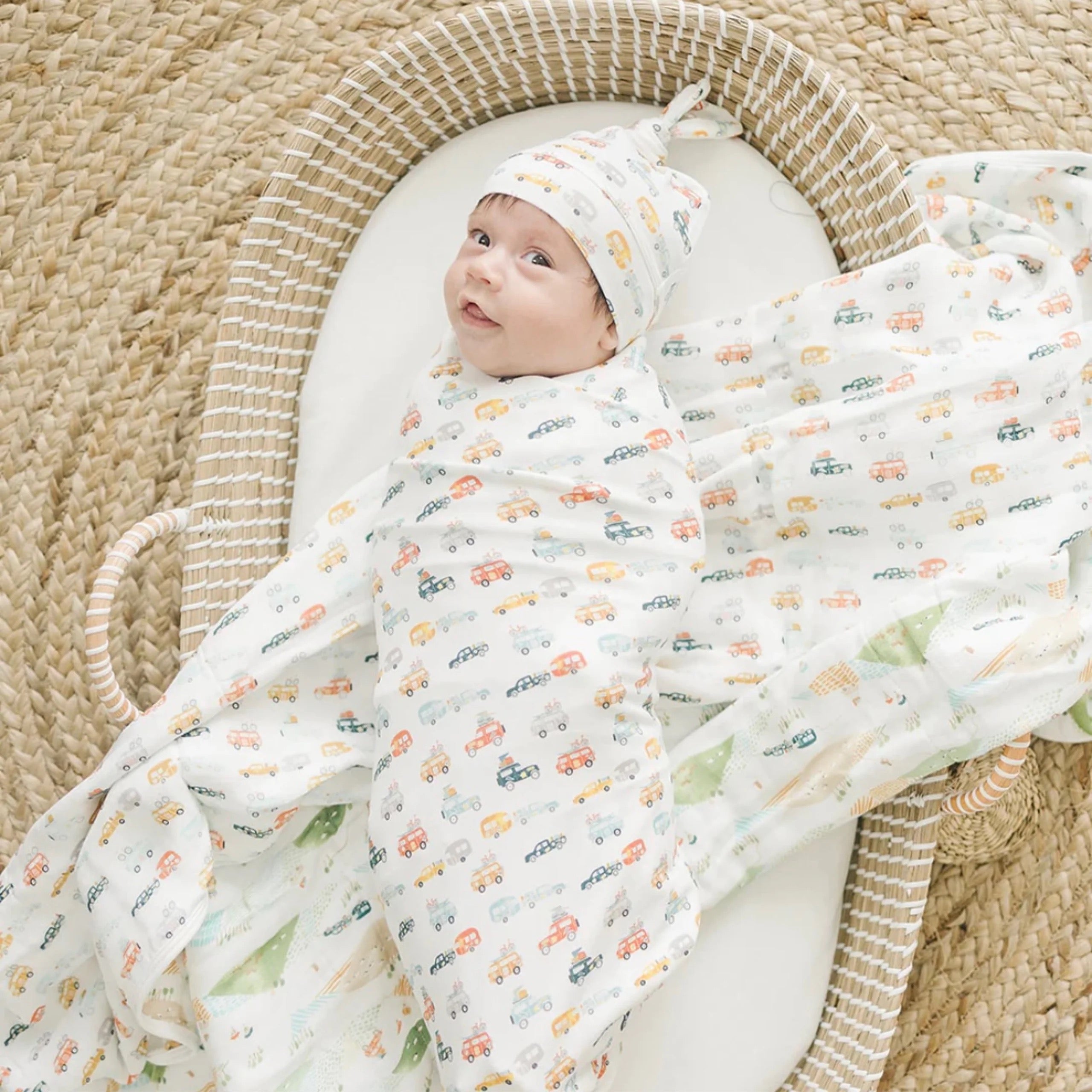 Made from our signature blend of ultra-soft and sustainable fabric using TENCEL™ Lyocell and organic cotton, this knit blanket is essential to your newborn's early days. Lyocell has superior thermal regulating properties, and with just the right amount of stretch, this blanket is perfect for swaddling. The blanket features a polish bind hemming and measures 45" x 45". Manufactured at an OEKO-TEX Standard 100 certified factory, you can feel confident that our blankets are free of toxic chemical and always safe for you baby.