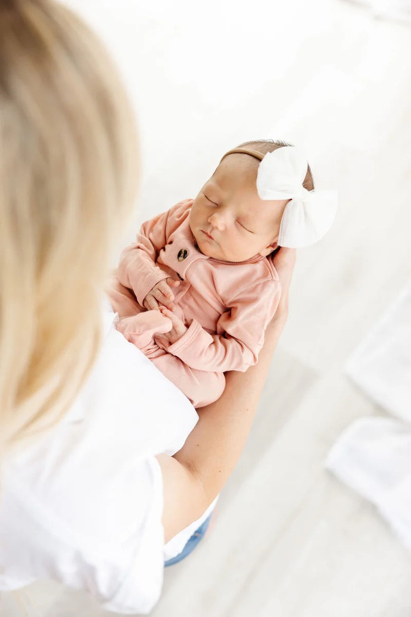 Good things come in pairs and our tops + bottoms are no exception. They’re made from our signature silky-soft material for a stretchy, comfy fit with functional buttons and fold-over waistband for room to grow (or to wear high-waisted). Say goodbye to socks that slip right off with built-in footies (on the newborn size only) to keep those tiny toes warm without the fuss. Unbelievably sweet mixing & matching approved.