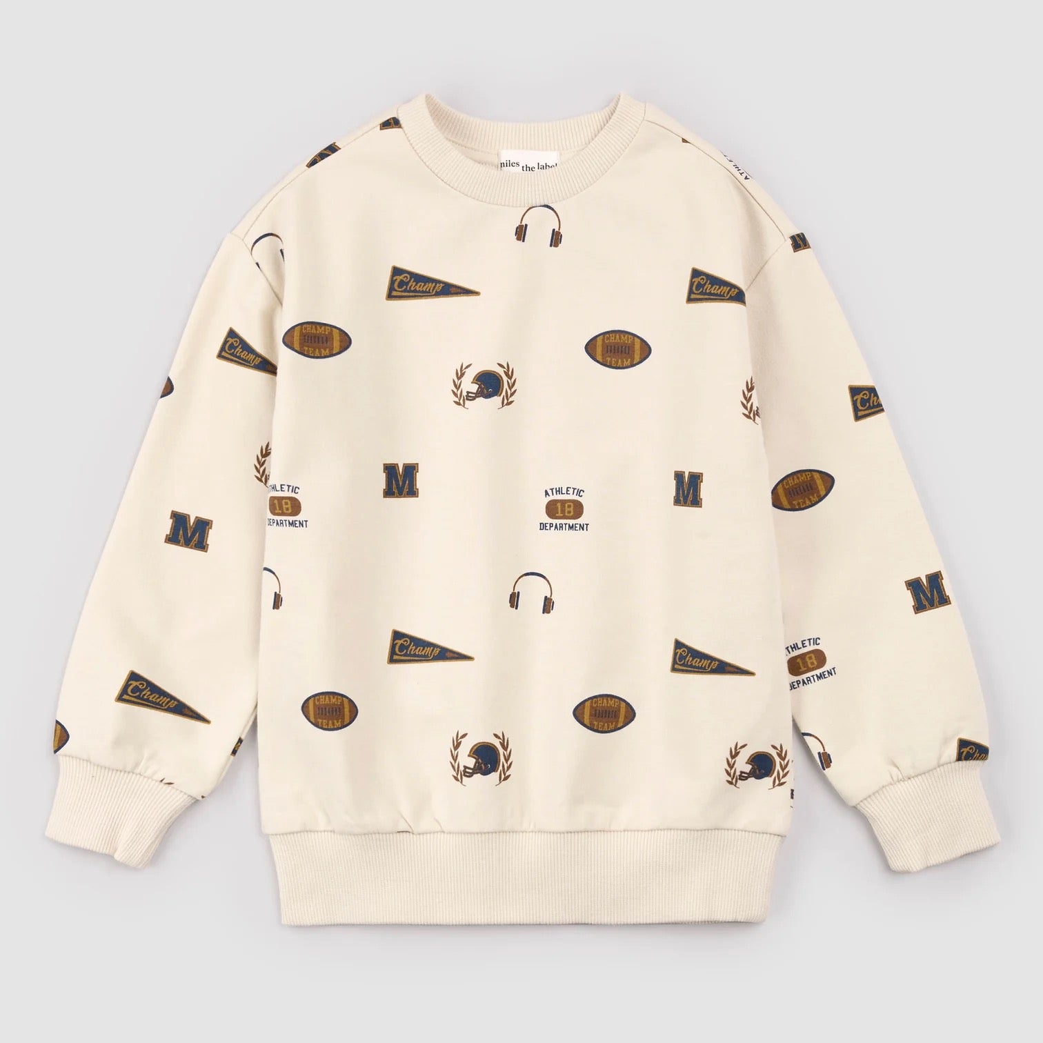 Perfect for meeting friends at the track, this light sweatshirt features our all-over Athletic Icons print. With a rounded neckline and simple ribbed cuffs, the sweatshirt is easy to pull over their head on chilly mornings. There’s coordinating joggers available in the same range as well as t-shirts to layer underneath for extra warmth.