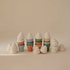 The Mushie mix and match ice cream toy set will add a scoop of fun to playtime. Made in four delicious shades, littles can practice color matching or get creative and serve up their own combinations. The squeezable silicone ice cream tops and cones easily separate and reattach to help develop fine motor skills and hand-eye coordination. Made of non-toxic, easy-to-clean silicone, these are a perfect addition to play kitchens, bath time, or beach days.