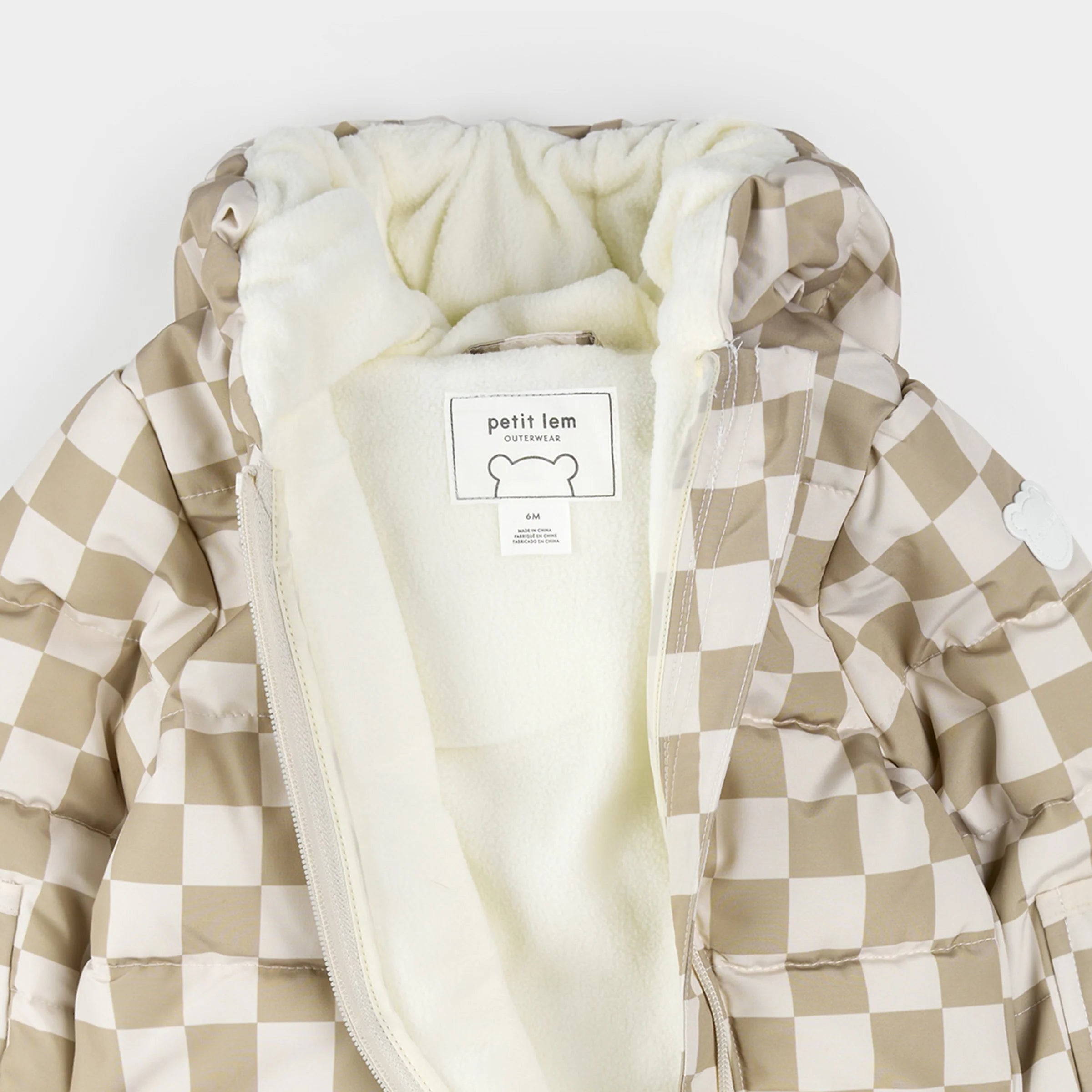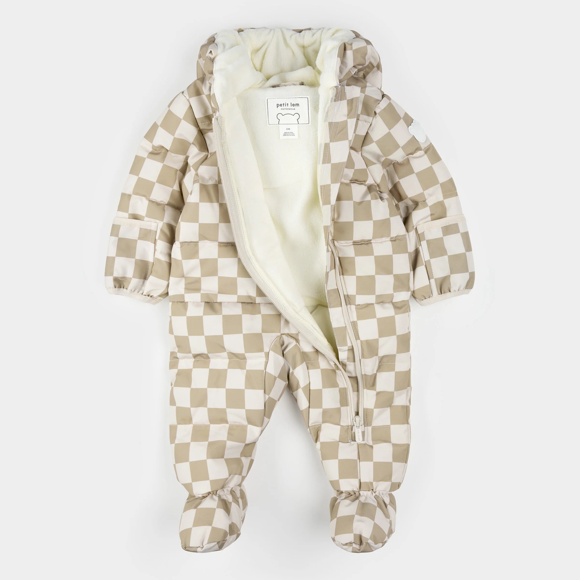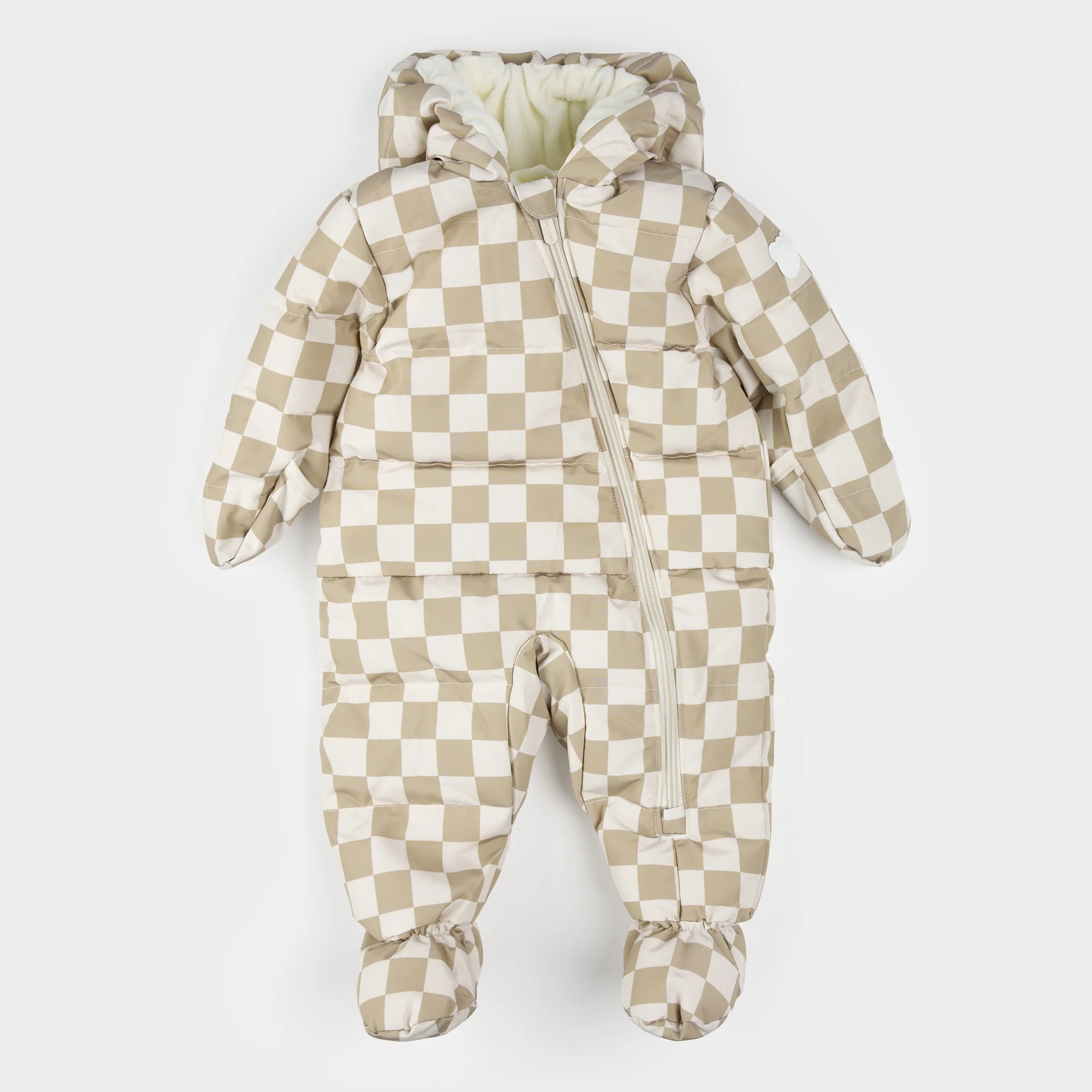 Cream Checkered Hooded Baby Snowsuit