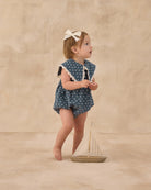 Our Porter Romper is perfect for playtime this spring! Featuring an oversized sailor v collar and elastic leg openings, it's both easy and adorable!