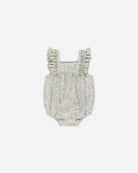 Our Maya Romper is the sweetest look for summer! Designed with ruffle scalloped sleeves with fine embroidered detail, three buttons at the back, and bottom snaps for easy changes.