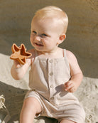 This romper features side pockets, a front button placket, and a relaxed fun fit!