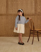 Stay warm in style with our Sweatshirt Dress, featuring a soft sweatshirt top and a pleated skirt with a sweet scalloped hem.