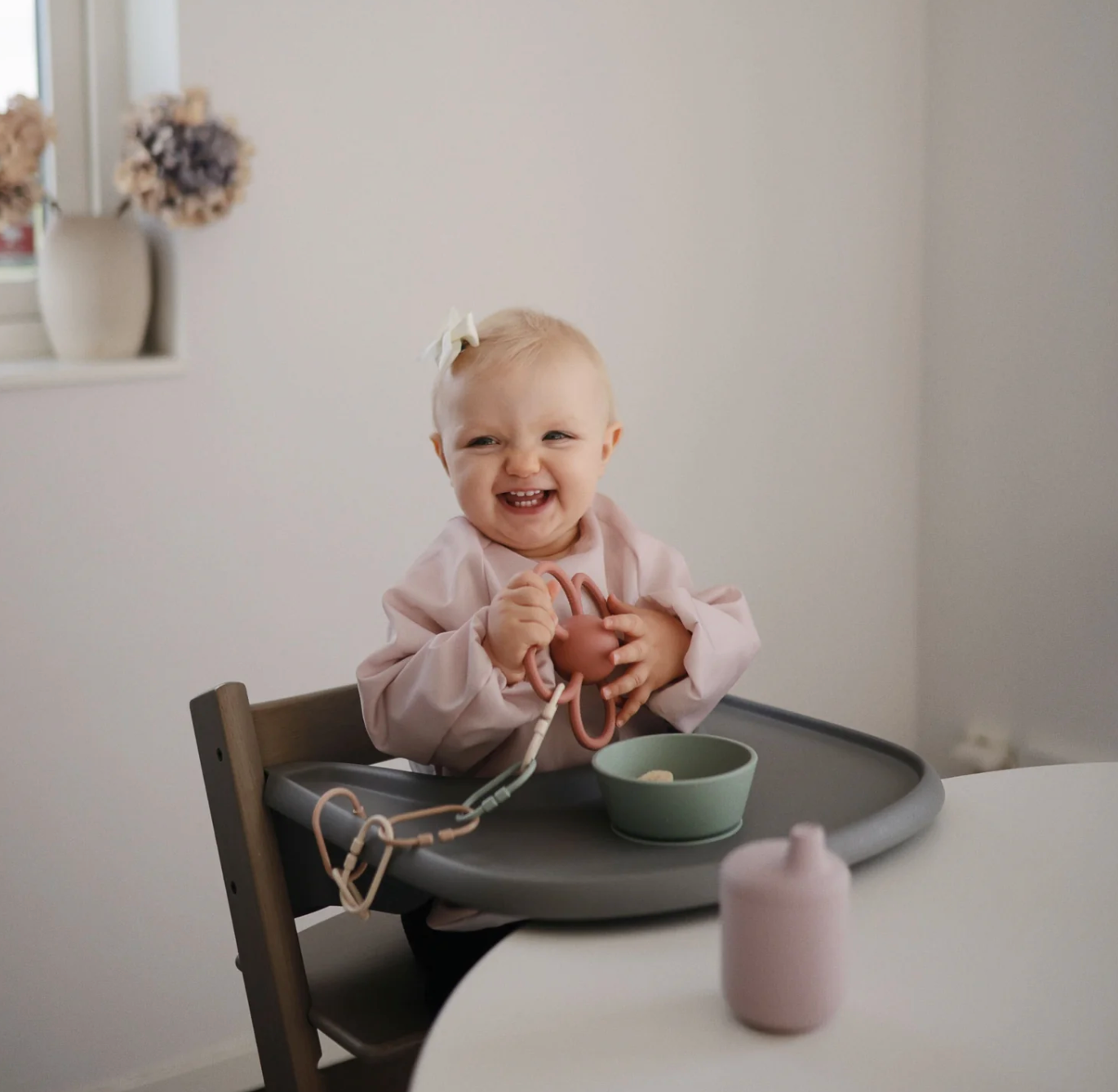 Keep the kids clean at mealtimes, during art projects or in other messy moments with our water resistant long sleeve bib. Its wide pocket easily catches food while the bib stays secure and fully covers outfits. With a velcro closure at the back of the neck, it's perfectly sized for littles between 6 and 24 months. Parents appreciate the wipe-clean material that's also safe for washing machines, so you can embrace the day without clothing stains.