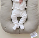 The Infant Lounger is suitable for babies aged 0-9 months. For older babies, we recommend transitioning to a Toddler Lounger only when they are 9 months+, 21" from head to bum(not feet) and are a strong crawler who can correct their own positioning.