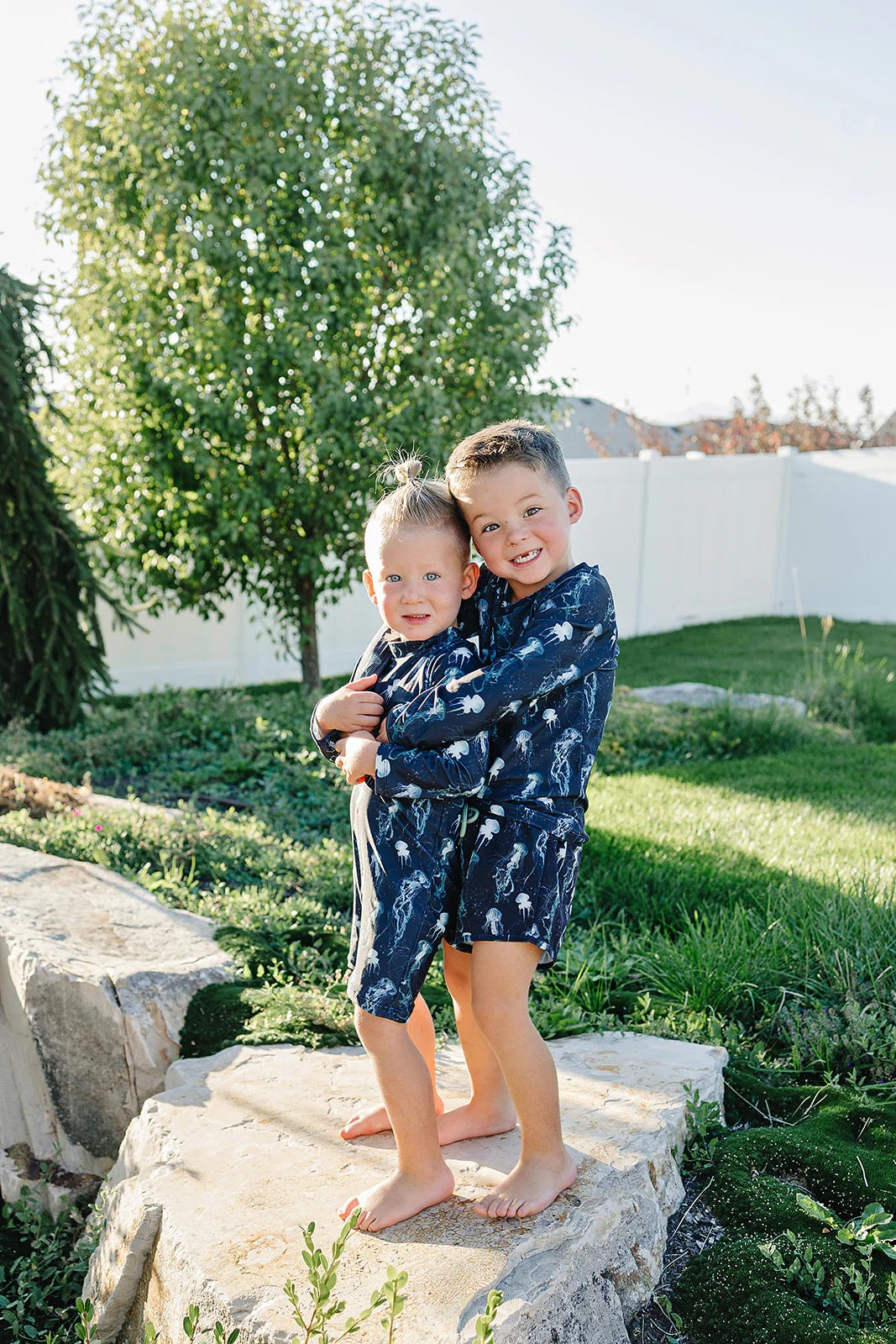 Our ultra breathable and quick drying custom fabric blend, allows for these swimsuits to be worn all day, with built in zipper protection for comfort. All of our seams are strongly reenforced, ensuring the suits will withstand the toughest of adventures. Swimwear that moves with your kids, not against!