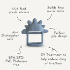 With an interior handle that's easy to grasp without dropping, baby will enjoy holding tight and exploring the textured surface and soft edges. Made from 100% food grade silicone, this toy is safe for mouthing and chewing as littles seek relief for sore gums.