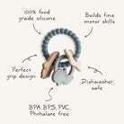 - Space Teething Ring measures 3.14 x 4.72" (8 x 12 cm)