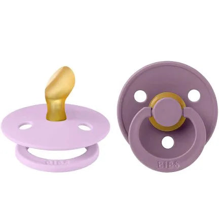 BIBS Colour is the original BIBS pacifier and has been on the market for over 40 years. It has the signature round BIBS shield with three vent holes and round BIBS engraved handle ring. The anatomically shaped nipple is curved at the top for a natural fit to the baby’s palate with an angled tip for easy tongue placement.