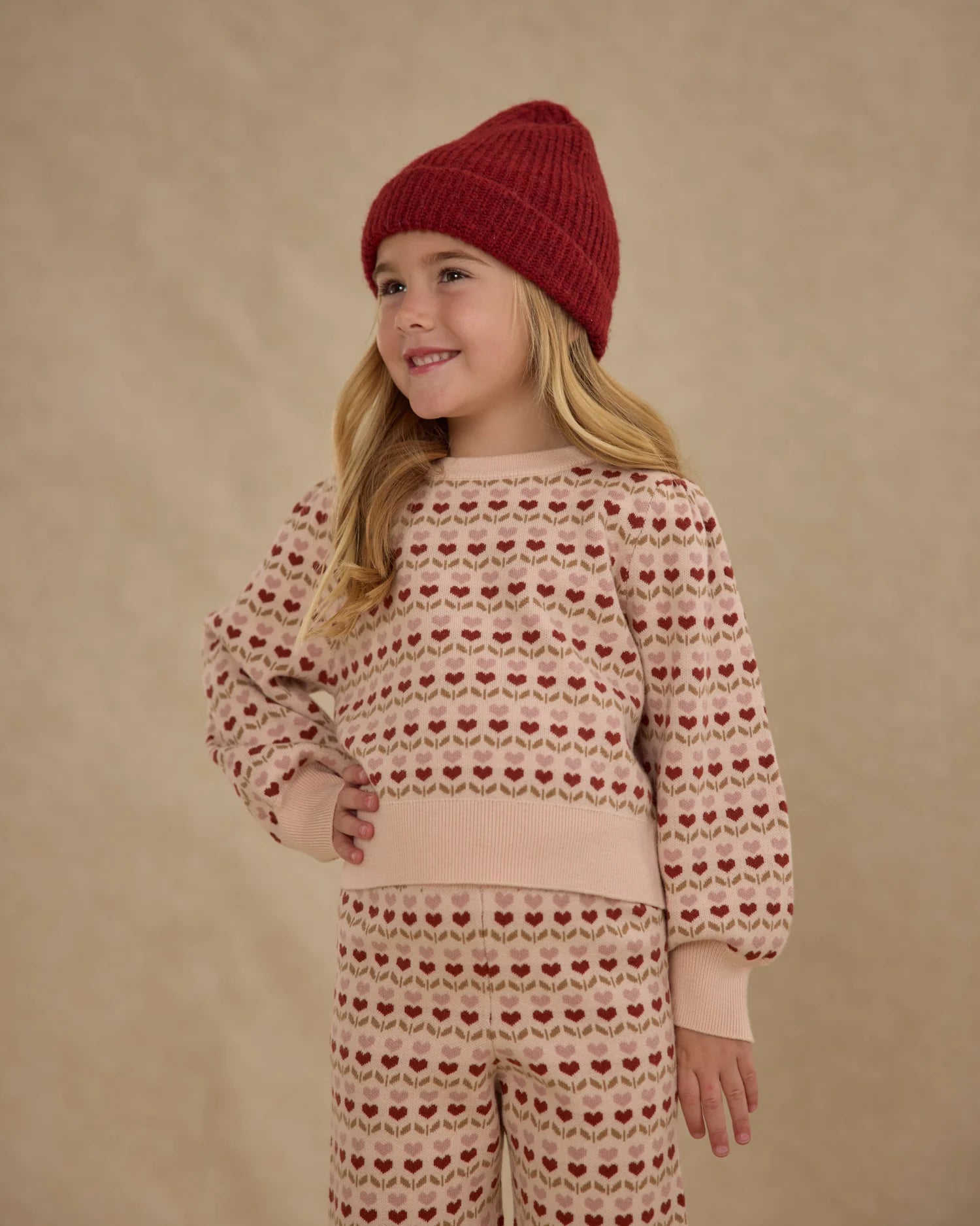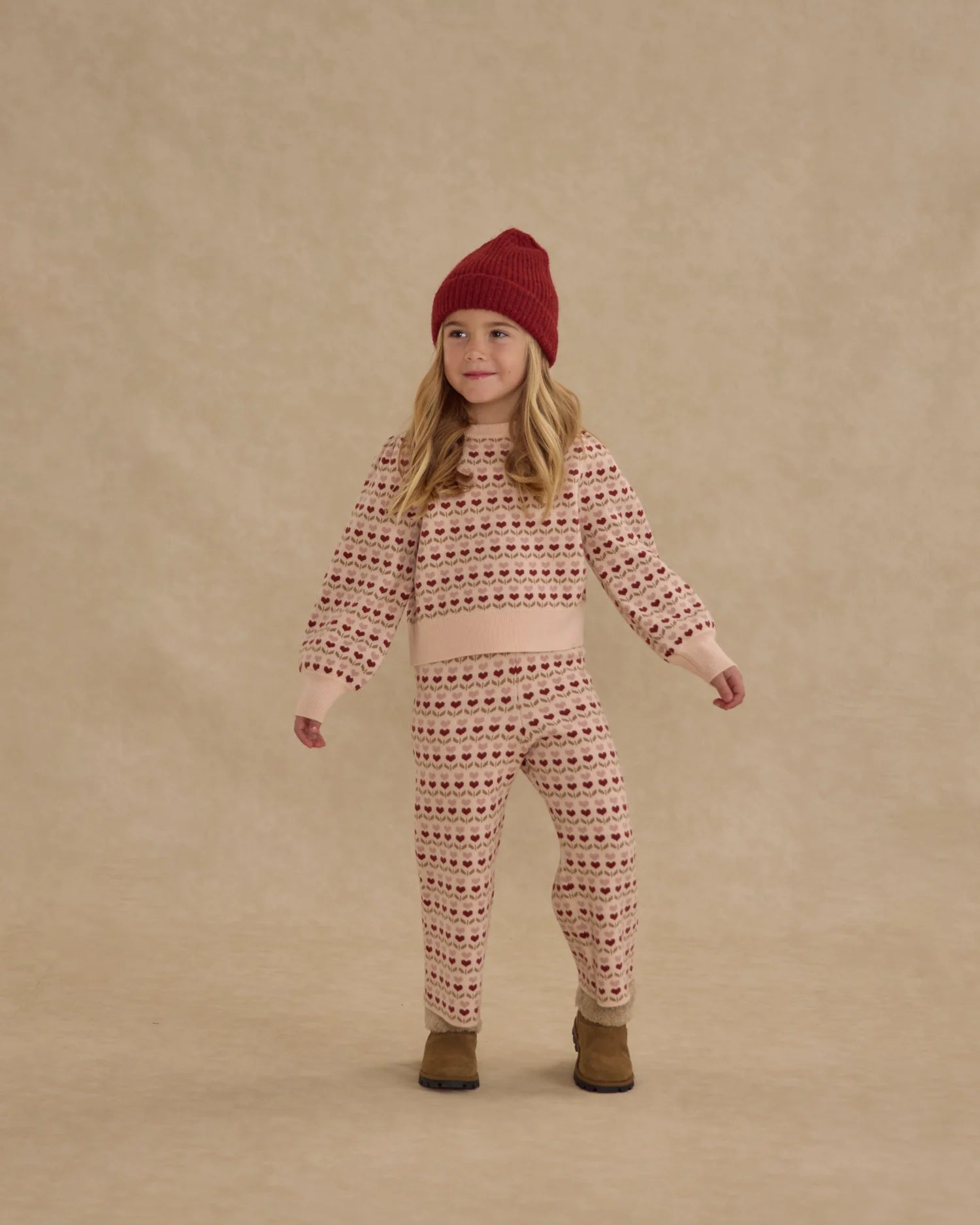 Our jacquard knit set includes a long sleeve top and cozy pants, perfect for everyday wear for this season!