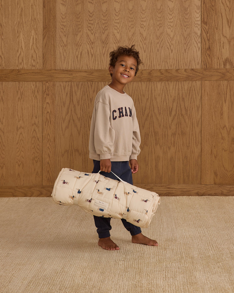 Expertly crafted from oh-so-soft materials, our Nap Mat features an attached micro-fleece blanket, built-in removable pillow, and plush batting for extra comfort—making naps on the go as easy as they come.