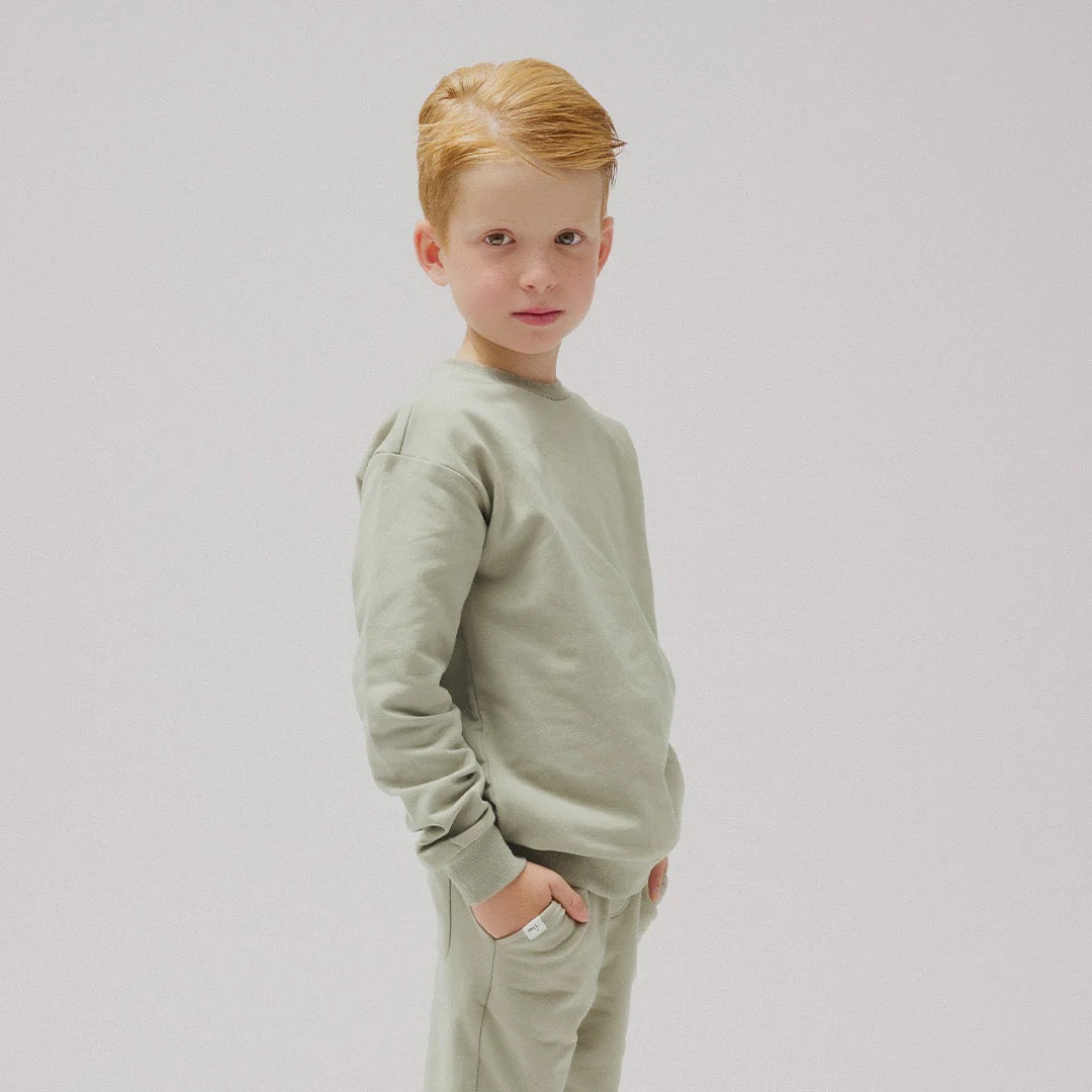 A wardrobe staple for the colder season, this simple sweatshirt and joggers are made from organically grown cotton fleece for a cozy fit to layer over t-shirts or under jackets.